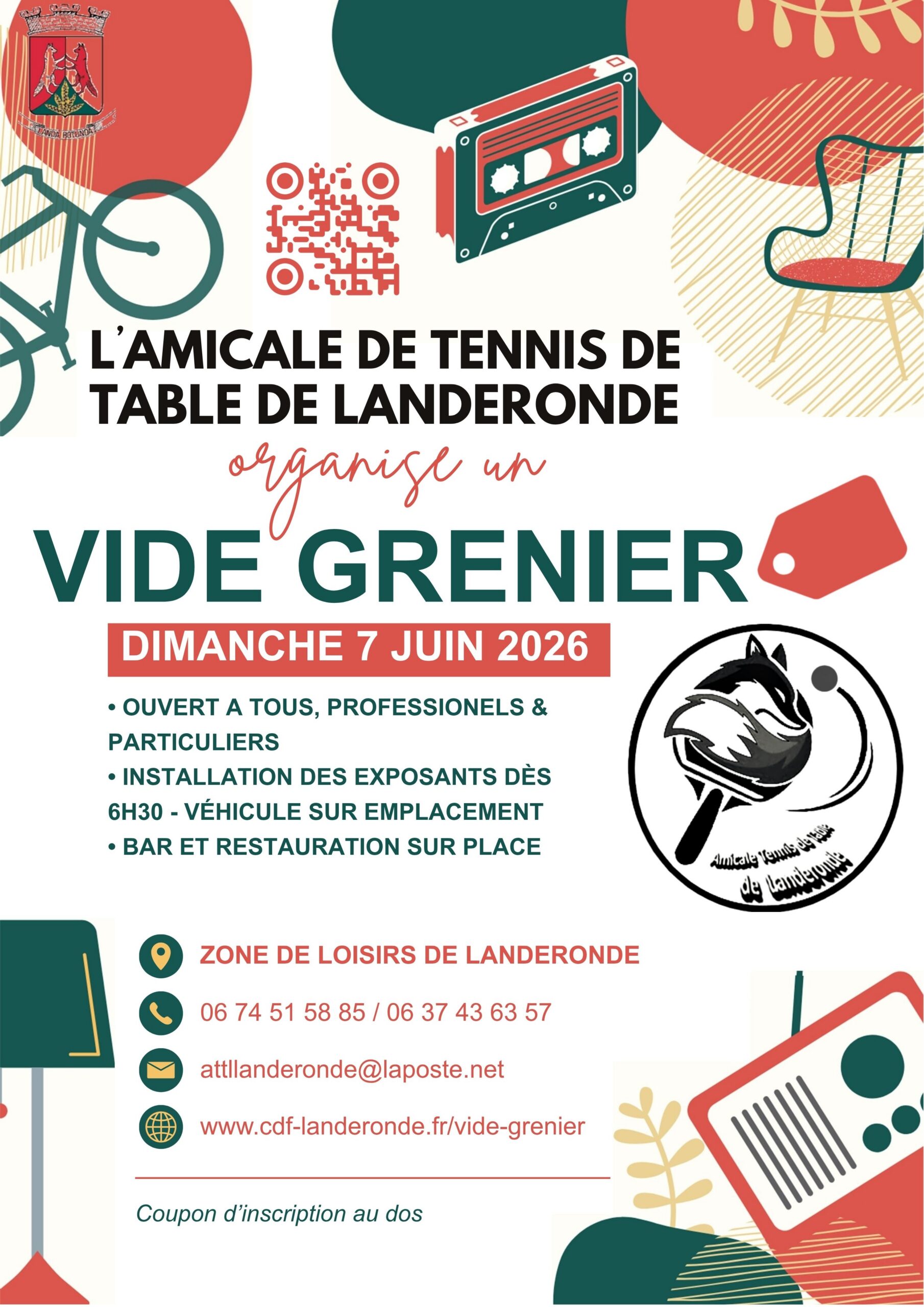 L'Amicale de Tennis de Table de Landeronde organise un VIDE GRENIER le Dimanche 7 juin 2026 à la ZONE DE LOISIRS DE LANDERONDE OUVERT A TOUS (PROFESSIONELS & PARTICULIERS) […]